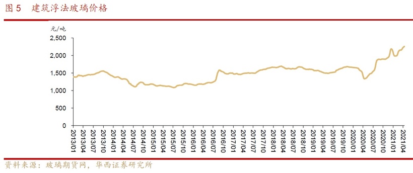 去年底建築浮法玻璃價格只是大約2000元/噸, 去年全年平均價格約1800元/噸; 今年上升勢頭持續, 4月底價格升近2300元/噸, 而目前最新價格已升到2800元/噸!